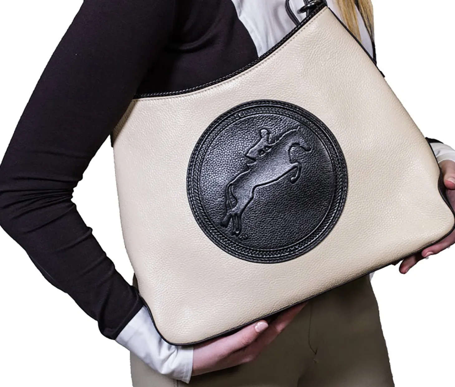 This stunning bag with adjustable shoulder strap keeps its shape over your shoulder. Available in 11 colors and four embossing options, this is the ultimate every day bag for horse lovers.