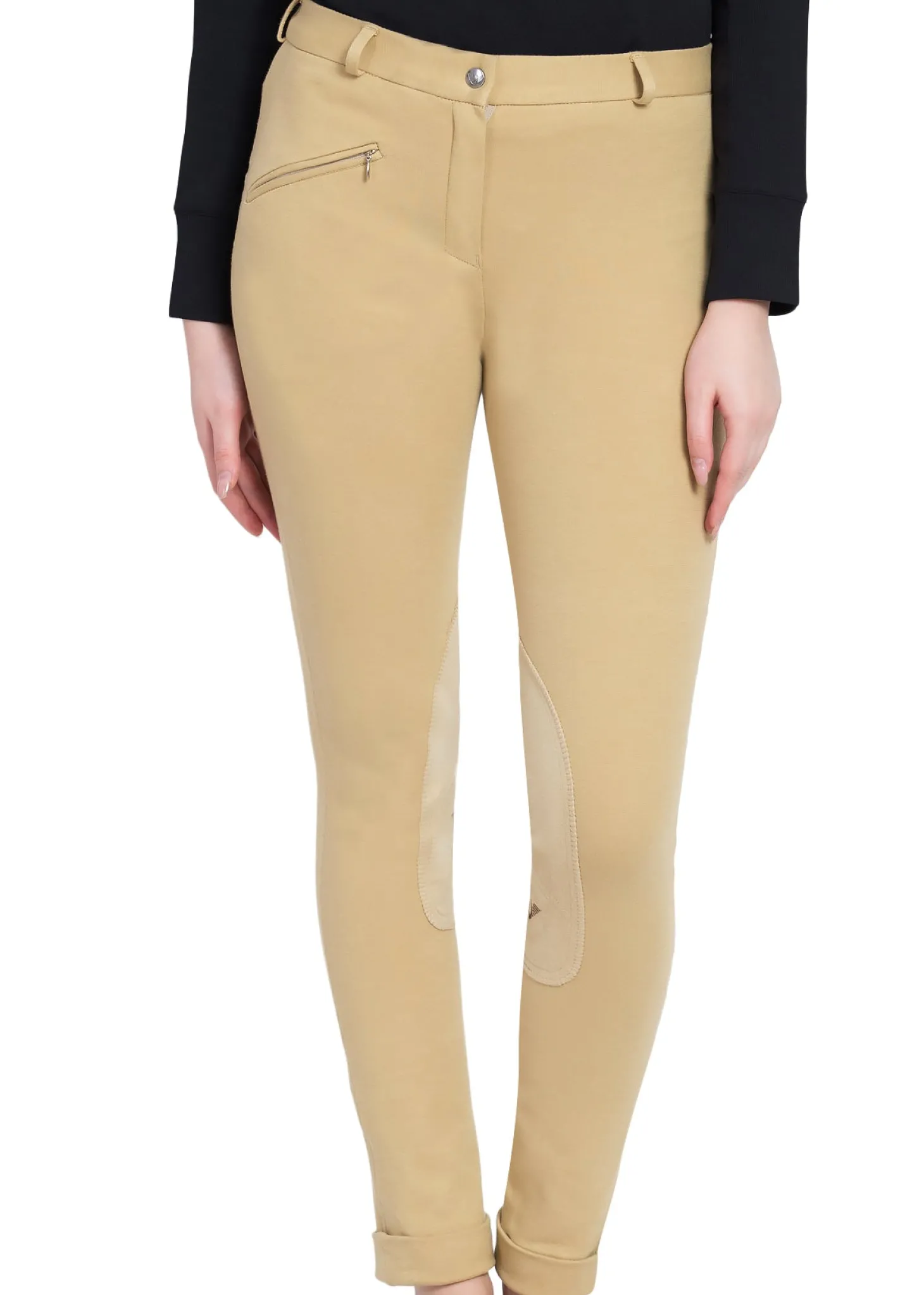 TuffRider® Ladies’ Cotton Jods are a great choice for adult amateur riders. Available in colors for showing and schooling, you’ll love the fit and feel. These cotton-based jodhpurs are soft, stretchy and fit slightly lower on the waist. The traditional UltraGripp knee patches will help avoid slipping in the saddle and the jod straps on the cuffs are removable.