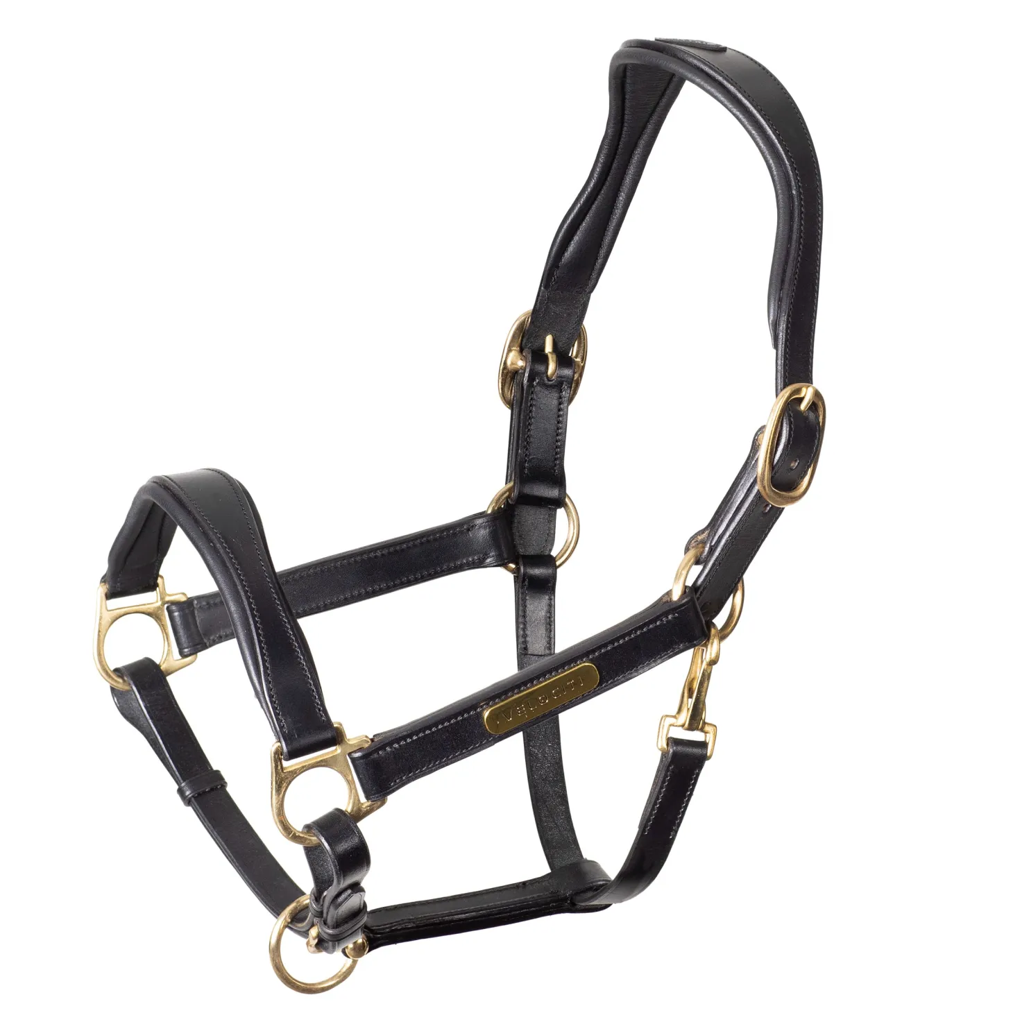 This smart and elegant Pro Series Plus Velociti Rapida Cushioned Leather Halter offers your horse pressure relief at the poll and nose. Harness leather with environmentally kind vegetable-based dye has a deep color and high shine.