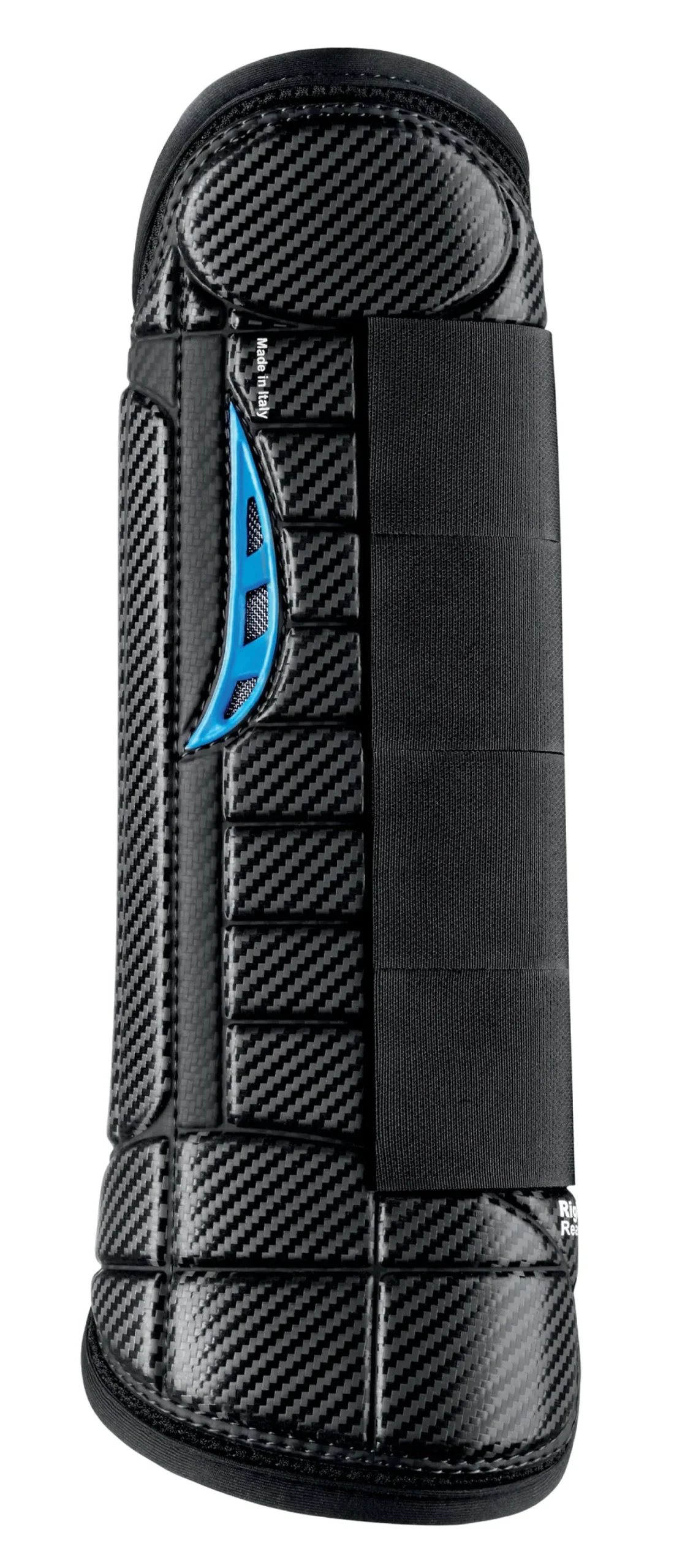Designed specifically for eventers, Veredus® Nero E-Vento Hind Cross Country Boots offer 360° of leg protection. Double-ventilated through 3D mesh ducted fabric to keep the horse’s legs cool, these eventing boots feature micro-perforated AEROX neoprene construction. They help provide protection in all terrains, and they don’t absorb water. Despite offering extremely robust protection, E-Vento boots are lightweight to allow the horse optimal freedom of movement and flexibility. Pads of polyurethane foam help reduce shock felt during high impact. Sleek outer shells offer a professional look, while sturdy hook-and-loop closures keep them secure.